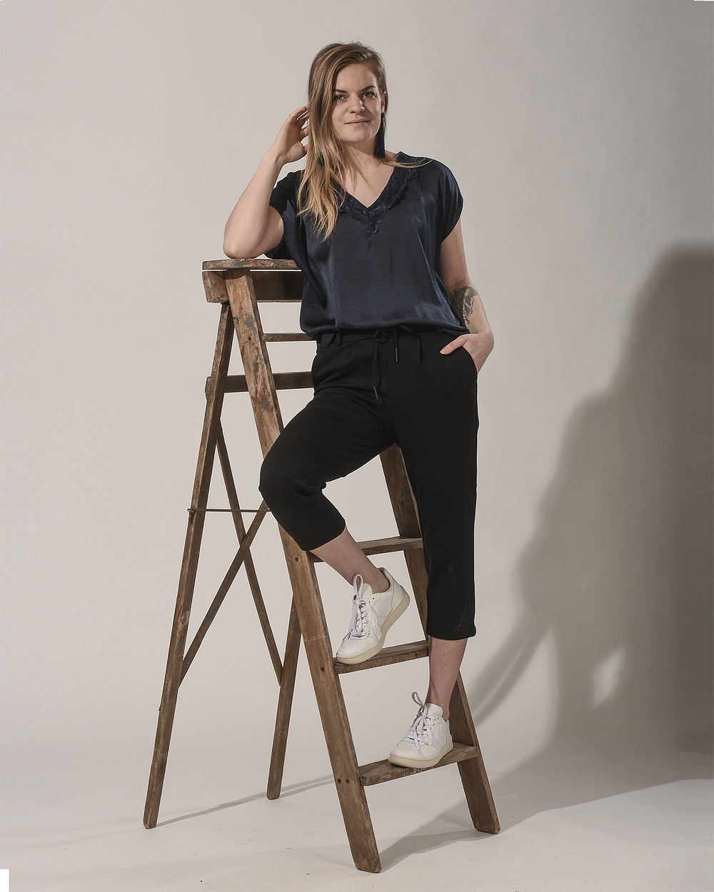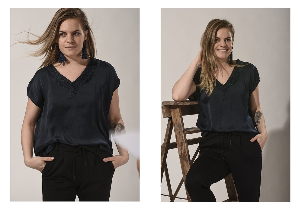 Jag har på mig nya capri-byxan från poptrash-serien och herre jösses vad skön den är på! Nästan snäppet skönare än vanliga poptrash och det är svårslaget. Jag har även på mig en fin blus med spets i v-ringningen men den här kommer vi hålla lite på till imorgon.. ;-)