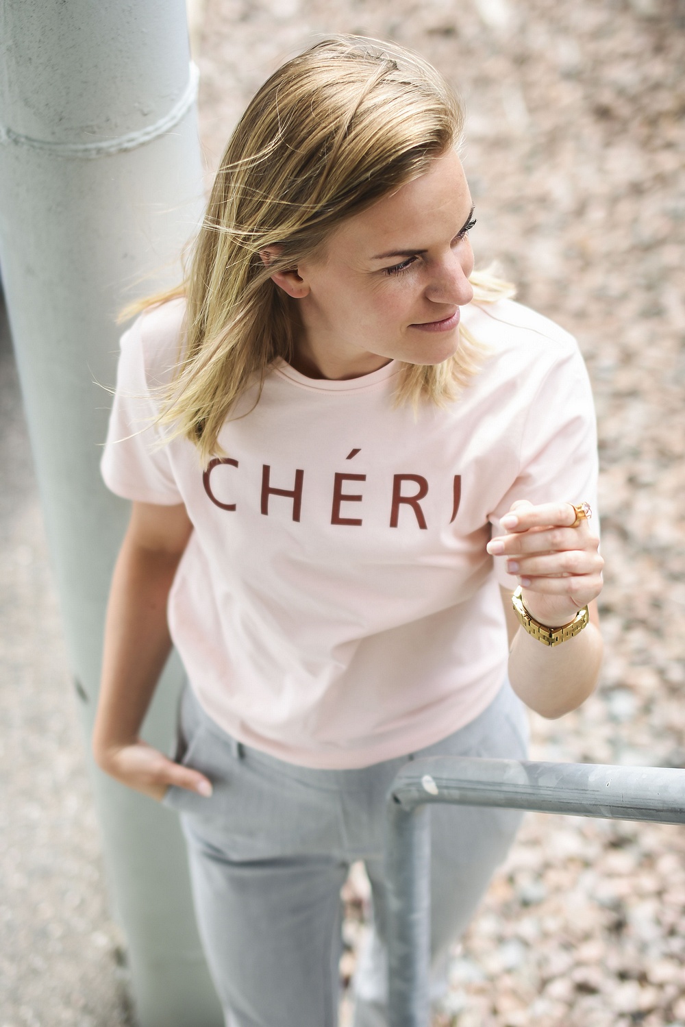 Här ser ni en ny t-shirt som kommer idag.. den kommer även i vitt och är riktigt stilren och snygg med det fina trycket "Chéri" som betyder Älskling på Franska.
