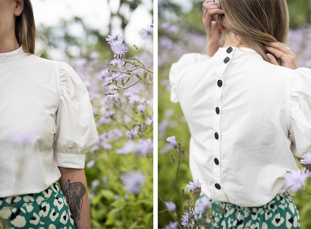 Min blus kommer idag. En rak lite lösare modell med fina puffärmar som ger den en än mer dressad look. Knapparna i ryggen är nog min favorit.. jag gillar när det händer något i ryggen. Det blir en fin detalj när man vänder ryggen till folk... ;)