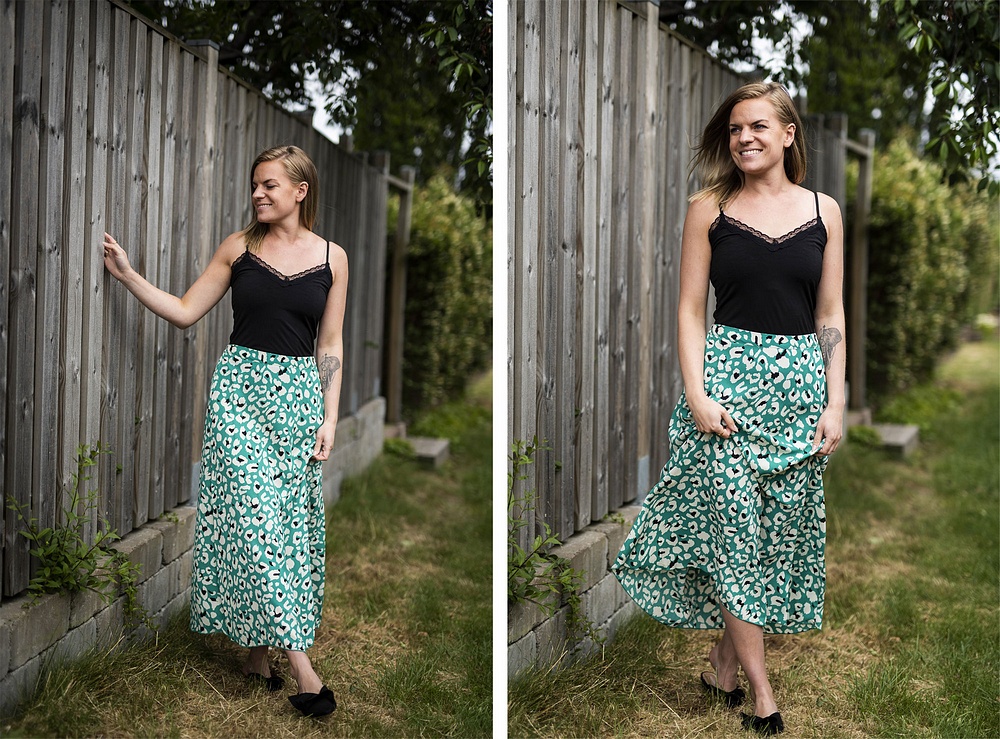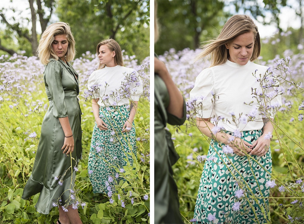 Idag kommer den här ljuvliga kjolen upp! Jag föll pladask för den direkt när jag såg mönstret och färgerna.. så fin somrig kjol och modellen är helt perfekt. Lite längre och med skön resår upptill. Superfin att matcha både till dagens linne som ni ser här på mig (kommer även i vitt och kostar 129kr) eller om man vill matcha det med en mysig stickad tröja som ni ser här på Ida.
