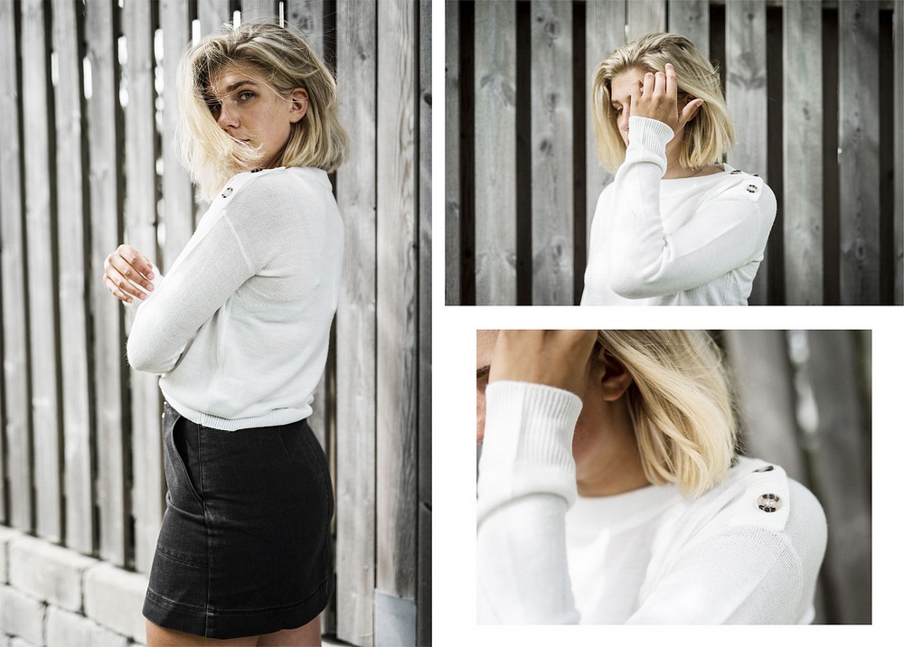 Men nu när det är lite lite kyligare så passar dagens nyheter väldigt bra.. vi har nämligen fått in en tunn snygg halvpolo-tröja som är såå himla härlig på. Här matchar jag den med dagens kjol. Självklart kan man ha halvpolo på sommaren när det inte är för varmt.. det ser ju väldigt dressat och snyggt ut. Här har jag gjort en knut på den här polon för att få den kortare men den är normal i längden och rak i modellen. Kjolen som kommer idag är i mjuk kvalité som är stretchig och skön på. Den kommer även i blå/röd färg och jag rekommenderar verkligen den här om ni vill ha någon dressad klassisk kjol.