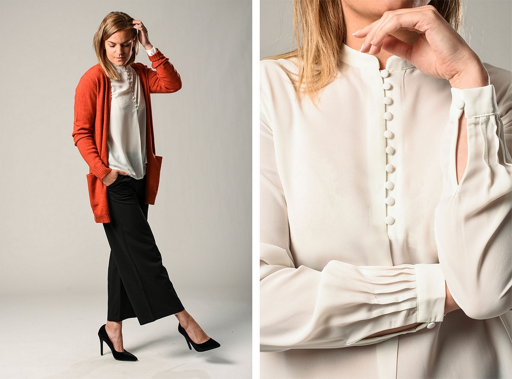 sist men inte minst kommer en blus i rak och lös modell med fin knappdetalj i ärmslutet. Den här är så skön och trots sin svarta färg så känns den sval i materialet.