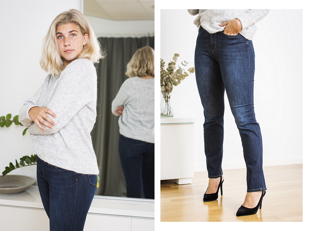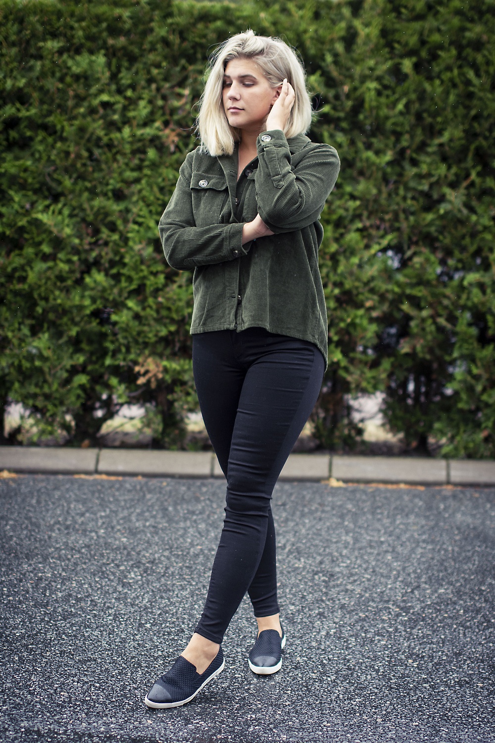 Byxorna är de sköna Onlblush i en mörkblå nyans samt hoodien ni skymtar under. En kanon outfit som är både snygg och skön i höst. Blusen Slfstina kommer också i en ny färgställning. Jag har den i grönt och kan verkligen rekommendera den till er.