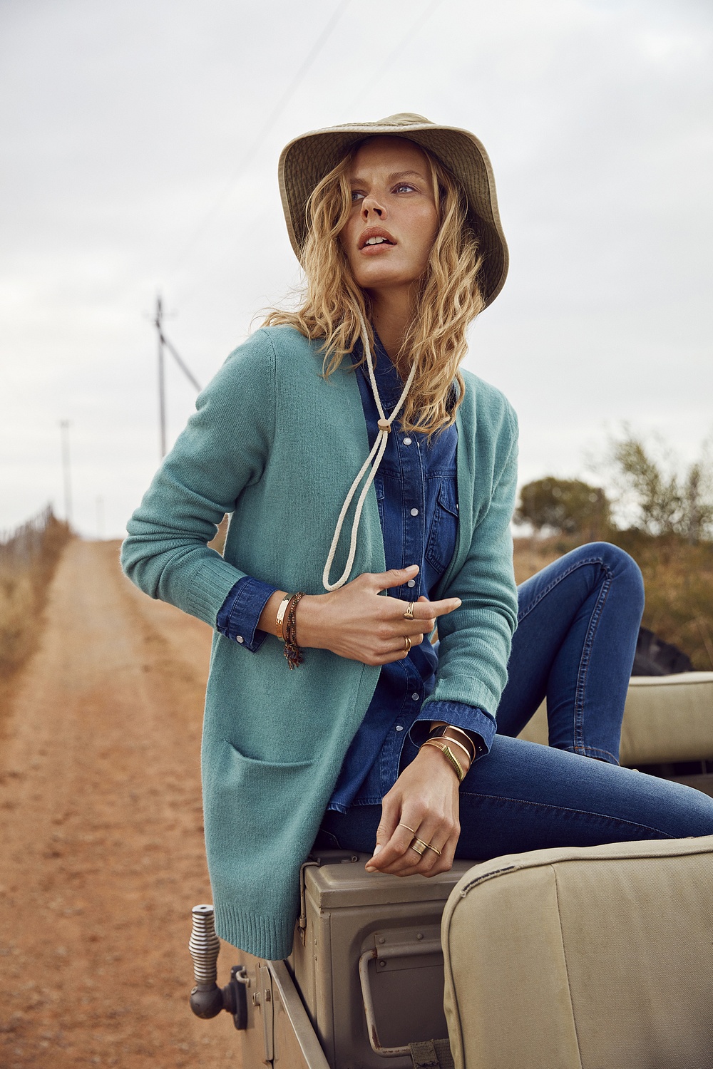 Fina toppen Vistasia kommer i en snygg grön nyans samt de efterfrågade jeansen som Ida hade på sig igår till Slfwalla.