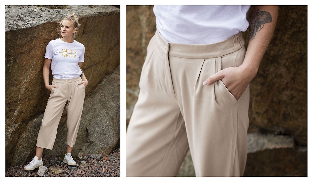 Idag öser regnet ner i Göteborg men det hör ju till hösten som kommit.. och kylan smyger sig sakta på för varje dag.. Just därför får ni idag den här fina klänningsblusen som är snygg att ha till långbyxor. Superfin blus i glansigare material matchat med dessa coatade byxor. Supersnyggt att ha en lång cardigan till detta också för att få lite extra värme på råa och kalla dagar.. eller om man bara vill vara extra snygg ;-) och för att stanna kvar och prata lite mer om byxorna.. dom är så så sköna! verkligen! Supersköna! så strechiga och följsamma och extra snyggt att dom är lätt utsvängda och i ankel-längd tycker jag. Rekommenderar verkligen dessa.