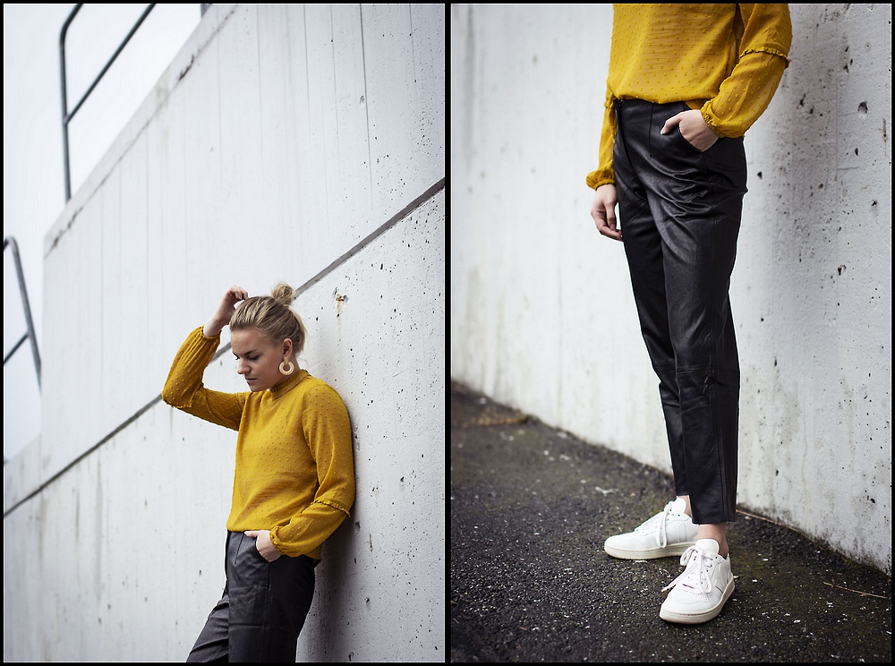 Ser ni vilka härliga nyheter som kommer idag. Perfekta för både årstiden och vädret. De lite lös-sittande skinn-byxorna är så coola och sköna på när dom inte sitter åt.. och det blir extra snygg kontrast att matcha till en dressad blus som här på bilden. Blusen har så fina detaljer och kommer även i svart.