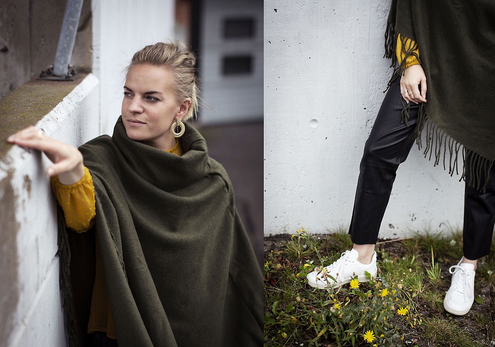 Och sist men inte minst så kommer det en ny poncho här i mossgrön och med härlig lös polo. Fint att matcha ihop med dagens nyheter.. och även att ha över skinnjackan för att få lite extra värme.