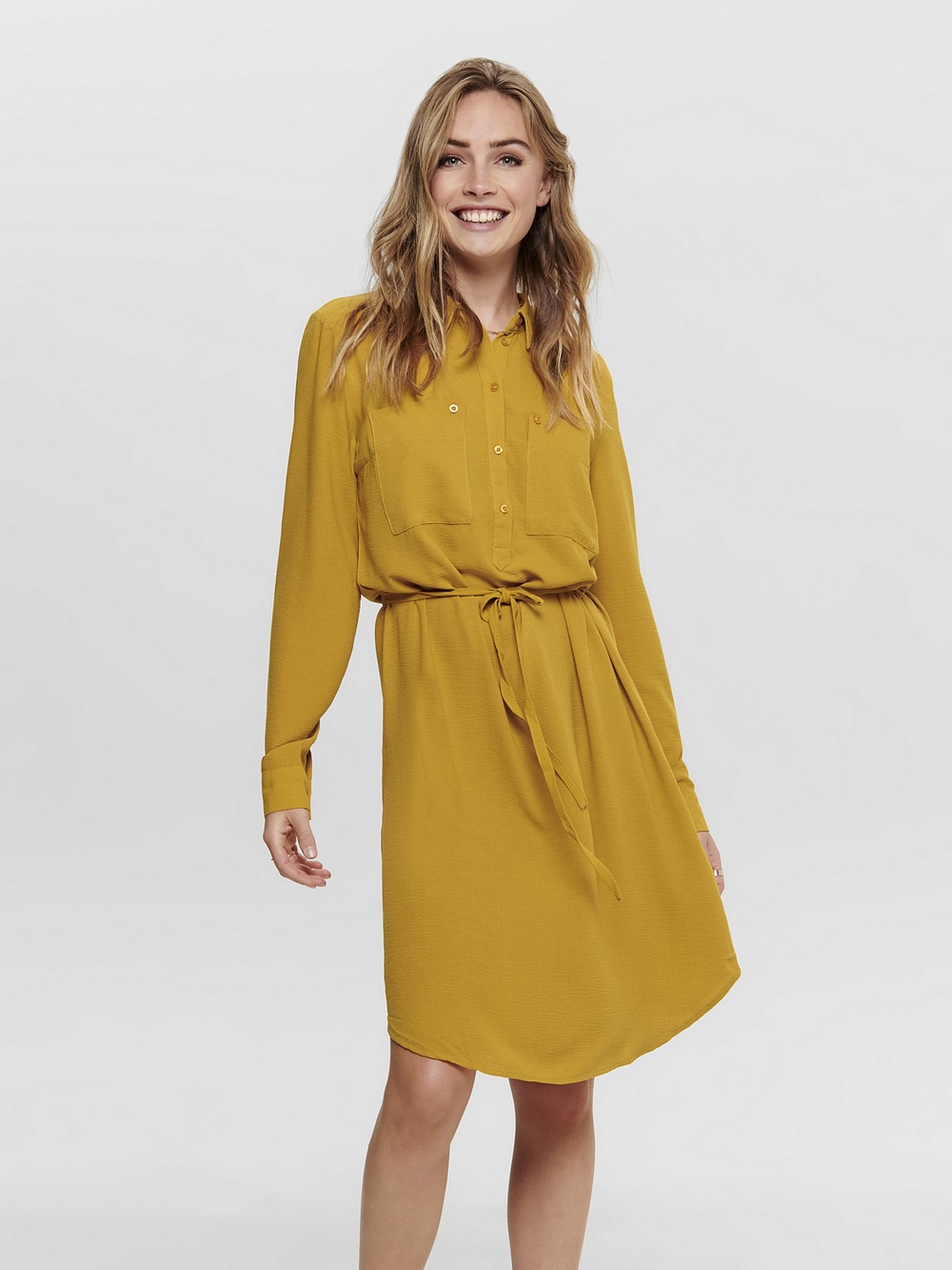 Idag släpper vi den fantastiska skjortklänningen, en riktig klassiker som vi nog aldrig tröttnar på! Den kommer i en härlig senapsgul färg som synes, en lite ljusare grön färg än Khaki och såklart i svart.