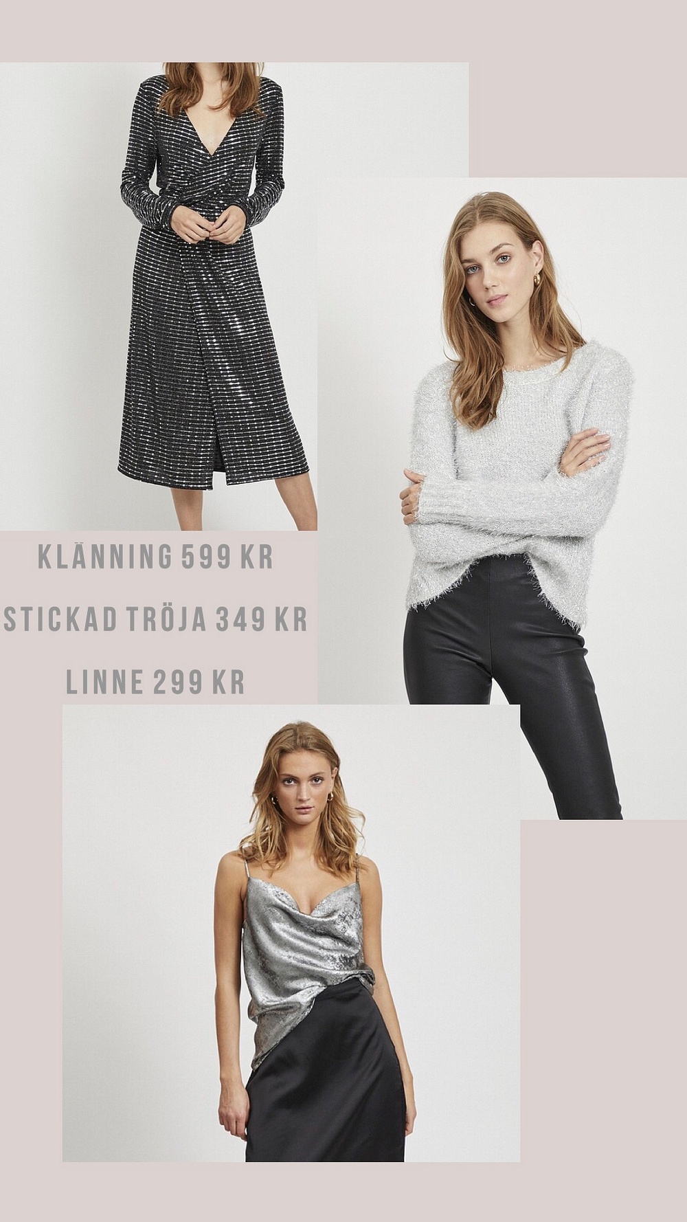 V-ringade glittertoppen längst upp till höger är i rak skön och lite lösare modell som faller så snyggt. Den kommer i tre färger. Superfin när man vill piffa till vardagen lite eller när man vill ha någon enkelt bekvämt på fest.