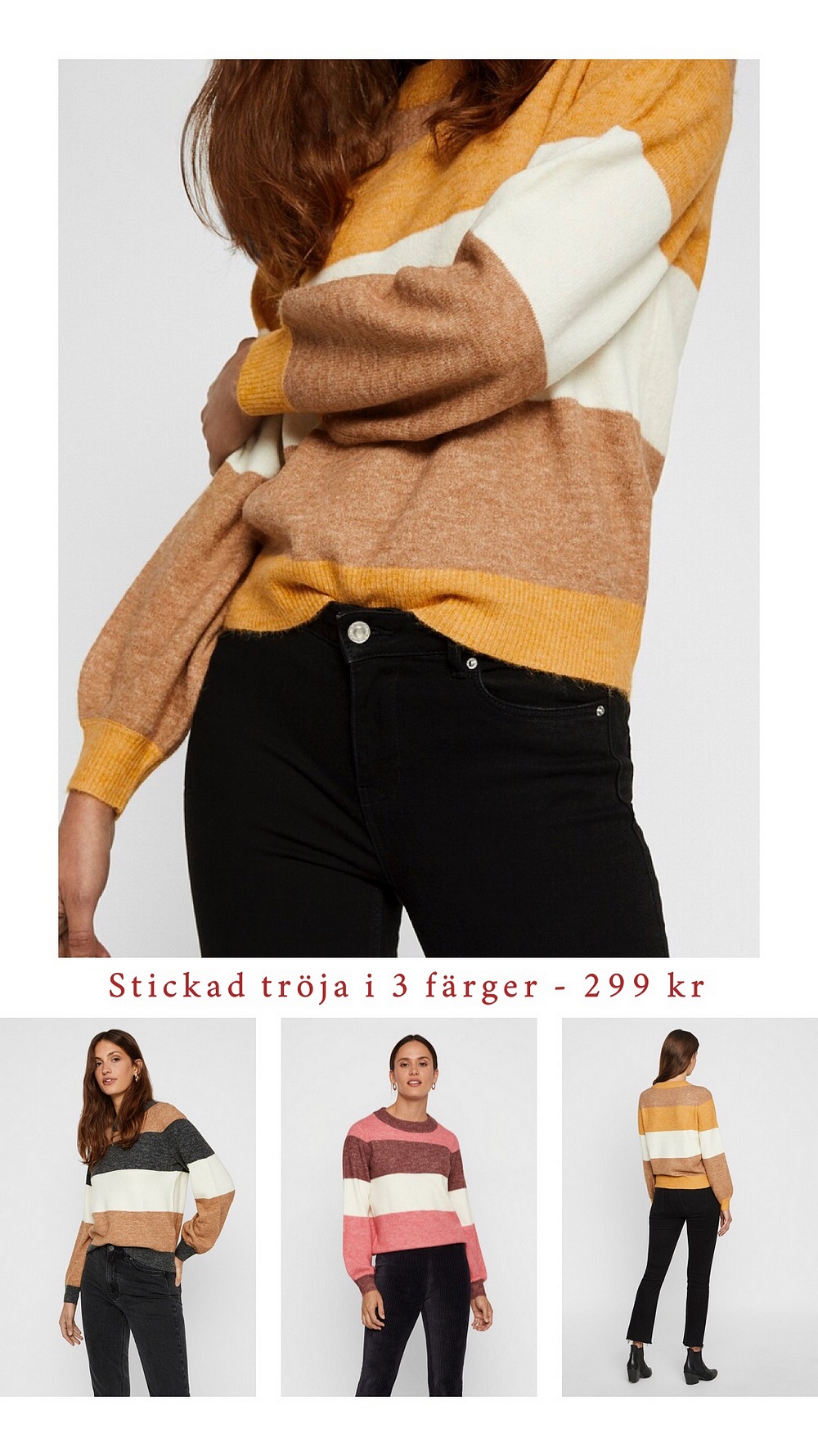 Jag ger er ett plagg här på bloggen och fler kan ni se på våra sociala medier.. eller i shoppen snart 10,45 ;-) Men den här tröjan är så himla mysig och höstfräsch. Den kommer i tre olika färgkombos och materialet är så mjukt och fint. Snygg pullover att ha till det mesta - matcha med jeans, kjol över klänning. You name it. Kalasfin.