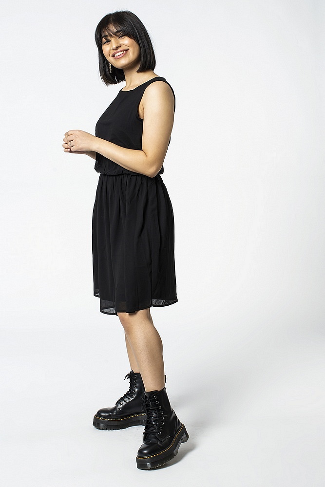 Och sist ut en klassisk svart spetsklänning i skirt material med spets upp till som man ser snyggt igenom. En underklänning så att den inte blir genomskinlig. Resår i midjan och fint fall.