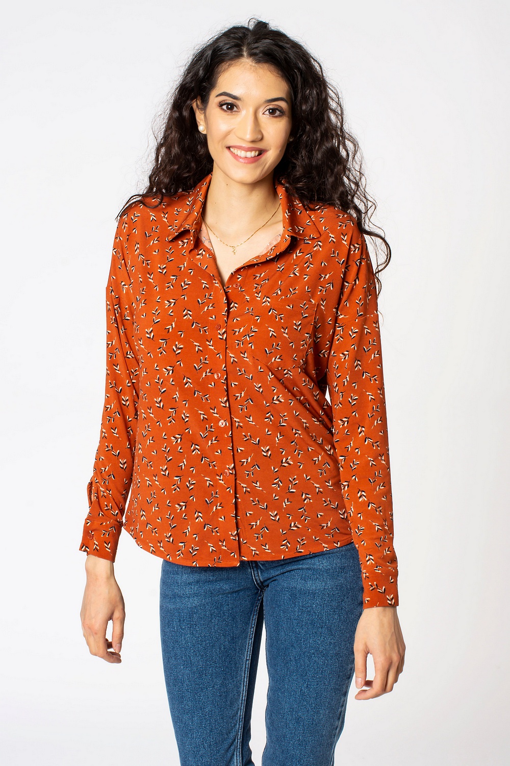 Den orangea skjortan/blusen kommer även i en mörkblå färg, väldigt fin till jeans och fantastiskt mjuk i materialet. Pris 349 kr.