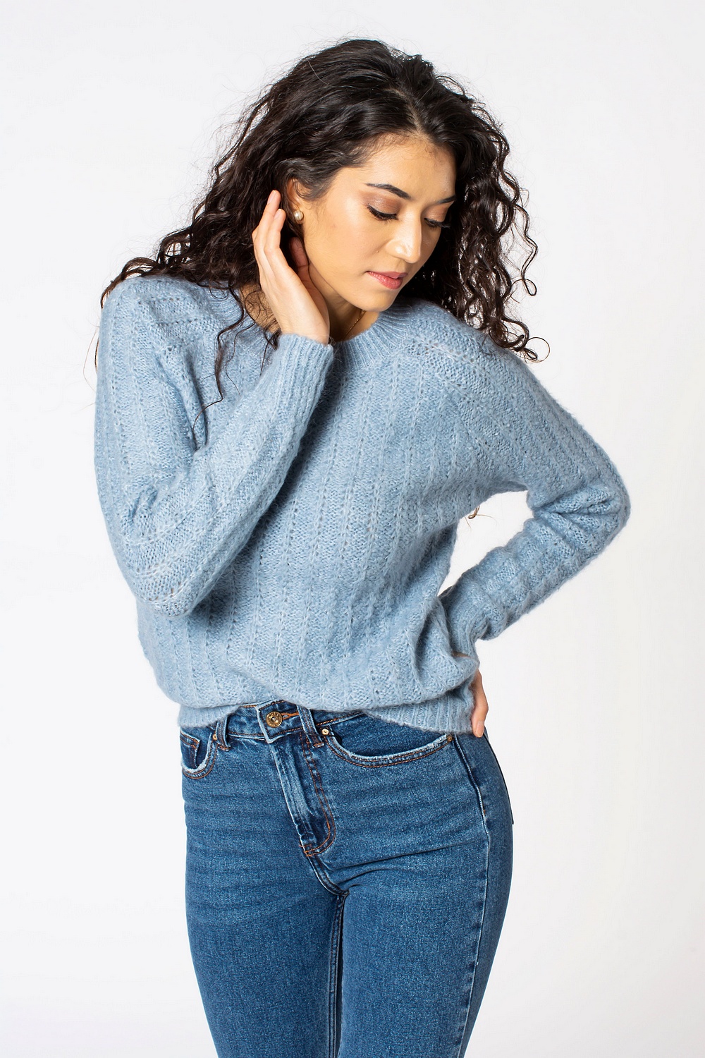 Missa inte den fantastiska stickade tröjan i ljusblått, mörkblått och vitt för endast 174 kr !