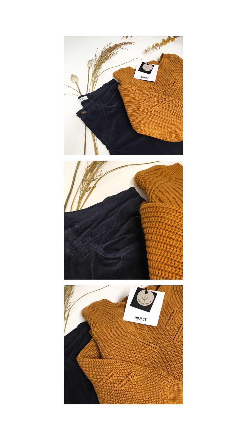 Jag tycker det är väldigt fint att matcha dom med den här mörkare varma gula tröjan som är lite mer grovstickad.