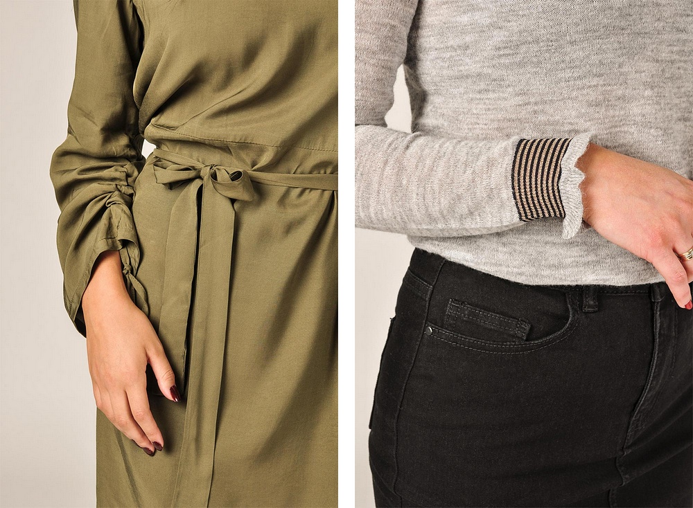 Först ut är Amandas vackra klänning från Minimum, knytdetaljer och den gröna härliga färgen - Katia heter den! Bär den över jeans eller strumpbyxor nu i kyligare tider och sen till bara ben i vår och sommar :). Vidare bär Jessica en supervacker stickad topp från nya varumärket, Levete Room. Både Jessica och Tanja har redan köpt varsin så passa på innan dem tar slut för vi köpte inte in så många.. vackra detaljer i ärmen och en härlig ljusgrå-melange färg..