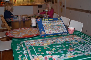 Ingen jul är väl fulländad utan ett 1000-bitars pussel?!=) Det gäller bara att hålla undan dammsugaren, annars kan man bli lite småtokig på slutet;)