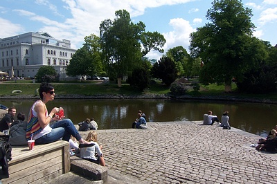 Det är underbart väder i Göteborg så vi köpte med lunch och satte oss vid kanalen - älskar vår fina stad! Ser ni att jag har på mig jeansen som kom in igår, sålde 2 st direkt på morgonen.