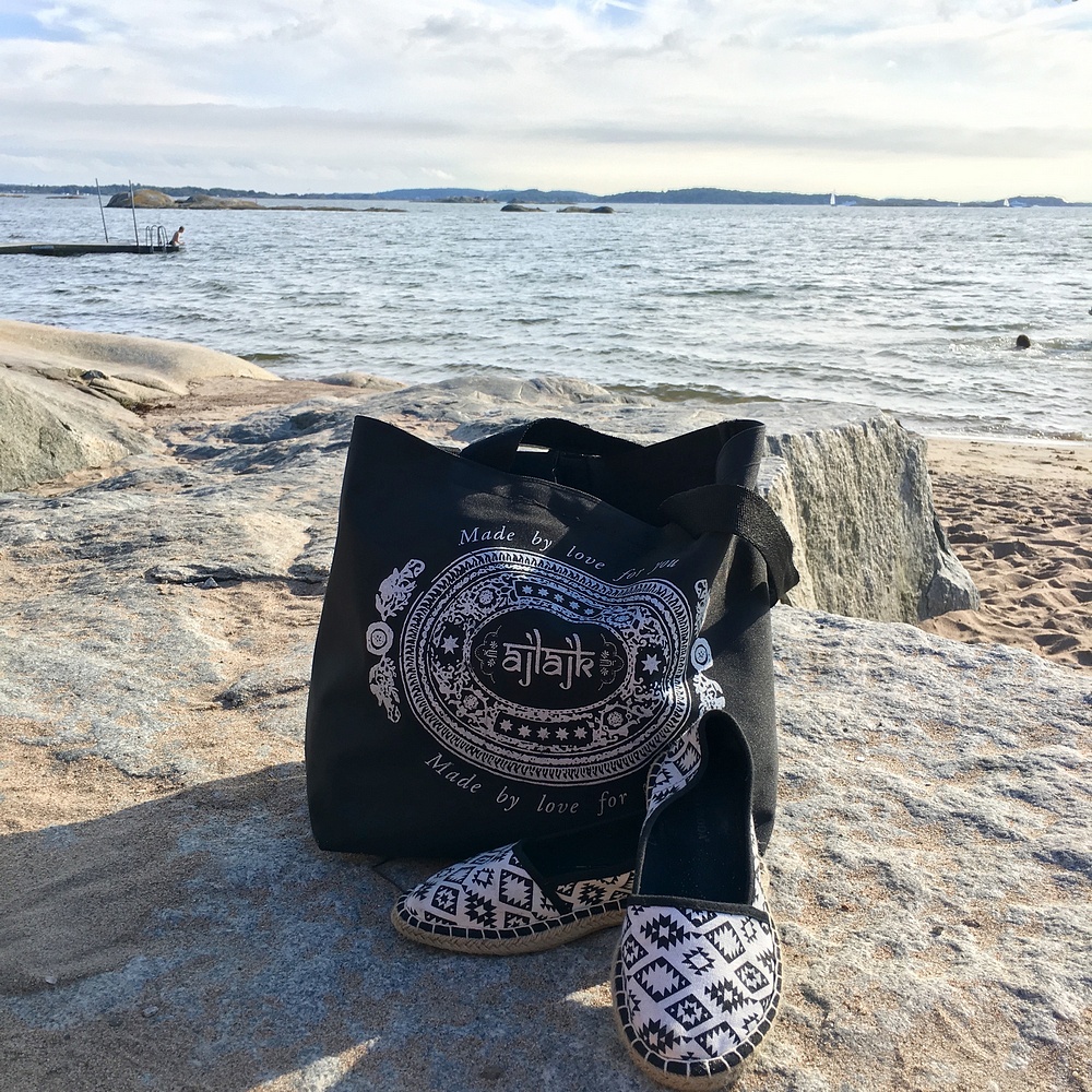 Vi tog en cykeltur ner till havet nu på kvällen och njöt av kvällssolen, dottern var den enda som var modig och tog kvällsdopp=) Hade med suveräna Ajlajk-väskan som var fylld med fika och böcker så vi satt och njöt i kvällssolen. Sköna espadrillosen "VmSmilla" finns ännu kvar några få av, sitter superskönt på så dessa rekommenderar jag verkligen.