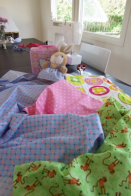 Detta har jag suttit med på morgonen... nya kläder till barnens gossedjur. Ha ha ha jag är en kratta på att sy så det tar tusen år att bara göra en enkel klänning men nu är den klar, dags att fixa ngt nytt till Herr Nilsson nu då...