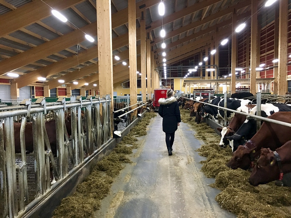 Jag och barnen tog tåget ner till Öland igår för att hälsa på min pappa. Idag var vi och besökte Nöbble Gård som ligger utanför Kalmar som min farmor o farfar ägde när jag var liten. Nu drivs gården med stort ekologiskt tänk med både djur, skog, åkrar och tex tillverkning av fantastiskt härlig rapsolja som jag vetkligen kan rekommendera om ni hittar den i butik. Min egen favorit är rapsoljan med citronsmak som passar lika bra över sallad som i matlagningen. Här är vi i deras nya ladugård med alla mjölkkorna och kalvarna. Suveräna dunjackan ViJala värmer skönt här i regnet och kylan som vi haft på Öland den här helgen.